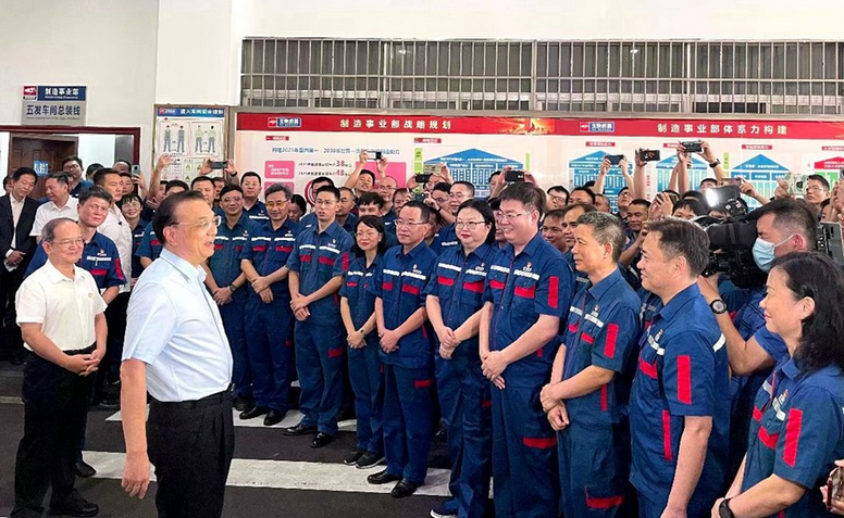 在制造事业部五发车间国六机加工生产线,李克强听取了玉柴创新发展、研发费用加计扣除、稳定产业链供应链方面的情况汇报。当得知玉柴从国家税费减免中获益很大时,李克强说,减税降费就是要让企业轻装前行,企业发展好了,可为国家做更大贡献。