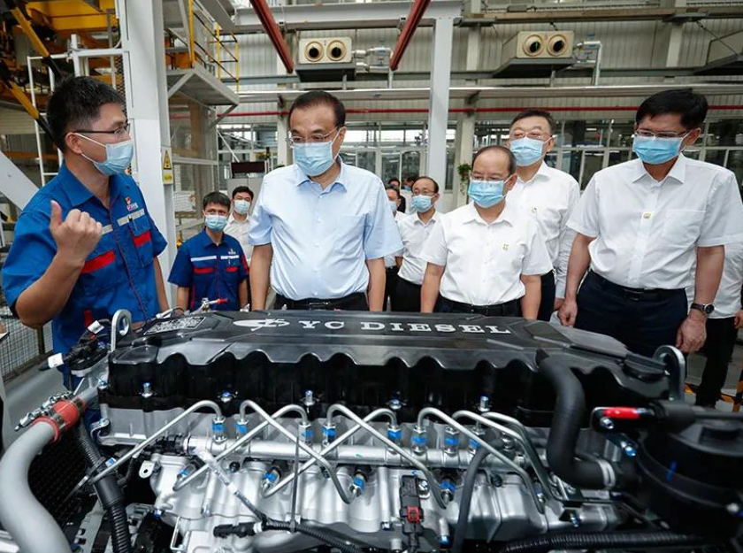 李克强说:“高速船用发动机最大功率达到4000马力,农业机械用发动机突破700马力,这是非常不容易的,由此可以看出整个企业的创新发展活力。”